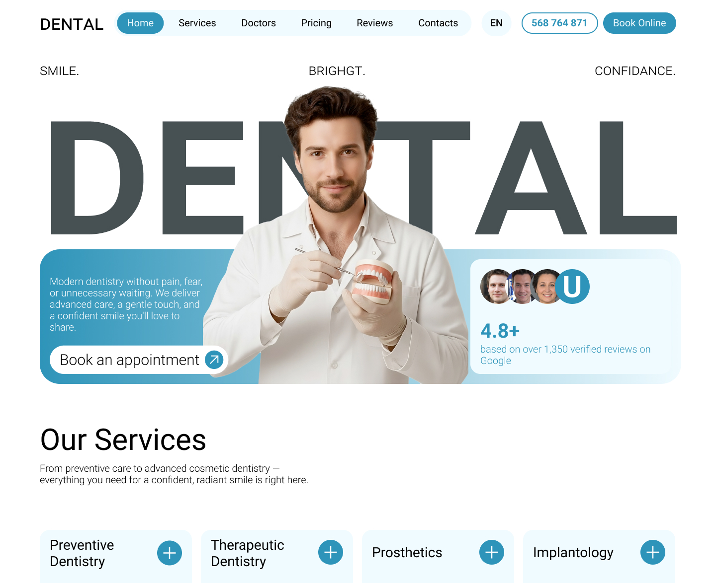კლინიკაში ჩაწერა ვებგვერდის მეშვეობით. სპეციალისტებისა და მომსახურების კატალოგი. Google რუკებიდან შეფასებების ინტეგრაცია.